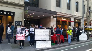 Several individuals travelled from regional Victoria to attend the demonstration from far afield as Euroa, Sale and Shepperton. This demonstrates how those in attendance represented only the tip of the iceberg of public support for Julian Assange. This support was contrasted sharply with the ongoing betrayal of Wikileaks and Julian Assange by the middle class pseudo left protest groups. The only political organisation in attendance was the Socialist Equality Party of Australia, who along with the other sections of the ICFI internationally and via the World Socialist Website, have played a leading role in the defence of Assange and the current round of protests. Also in attendance were members of the anarchist group Disarm, who also organised a successful night vigil in Melbourne on June 19th. Every other so-called socialist, peace. anarchist or trade union group was absent. An excellent article from wsws.org gives an explanation of why an entire layer of people who previously defended Assange have now joined the State in persecuting him.