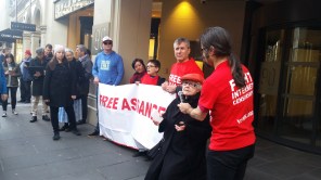 “Here in Australia our focus has to be on the responsibility for the persecution of Julian Assange and Wikileaks by successive Labour and Coalition Governments. At the demonstration on Sunday, both myself and journalist John Pilger raised the core demand, the Turbull Government must act now to ensure the unconditional release of Julian Assange from his involuntary confinement within the Ecudorean Embassy in London. We are not asking Turnbull, we are not begging Turnbull, we are demanding that they act.