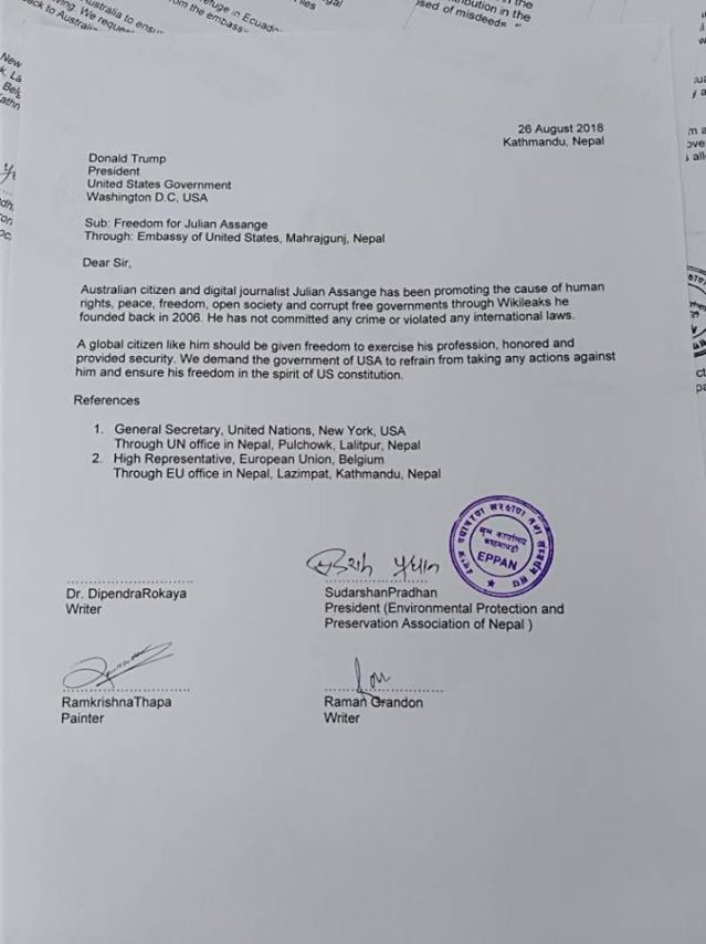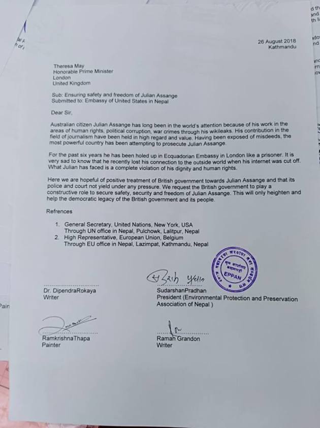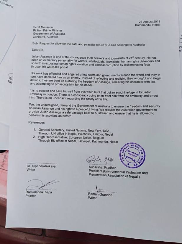 The protest in Kathmandu conducted a picket outside the Australian, British and U.S. Embassies on August 26th. They presented each Embassy with a memo.
