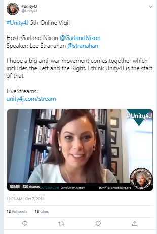The fascists in the #Unity4J vigil held on October 6th, clearly signalled that they are planning such a trap. Lee Stranahan and Cassandra Fairbanks made several points arguing that #Unity4J is laying the foundation of a future anti-war movement subordinated to the noxious politics of the far-right and the class-forces it represents.