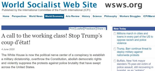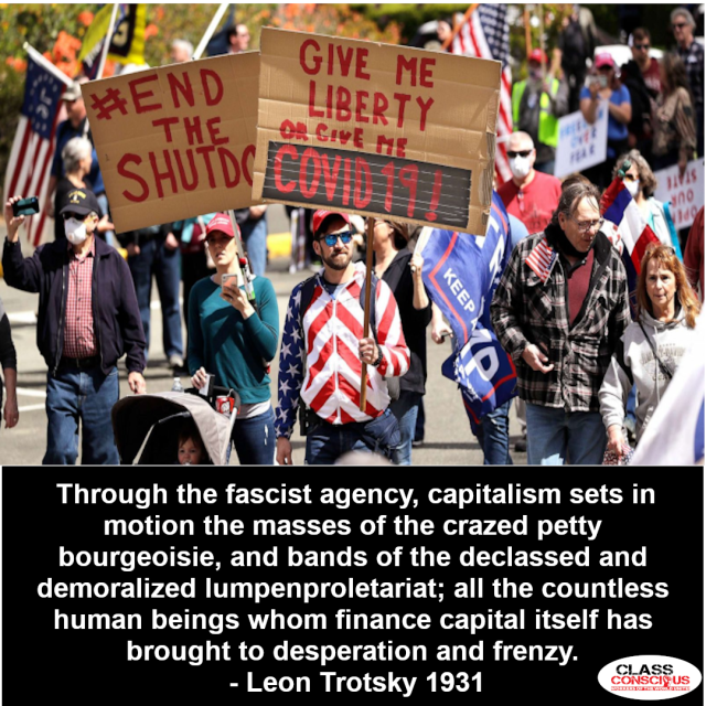 However, we see an emerging dynamic as Trump moves to deploy his incipient extra-Parliamentary movement, as well as his personal control of the Executive, as he comes up against constitutional limits. During April, Trump asserted an unconstitutional right to override state-based shutdowns to manage the COVID19 pandemic, but he received pushback from Democratic governors in places such as Michigan. Trump, on behalf of Wall Street’s homocidal “back to work” drive, and with the support of the capitalist press, was able to mobilize his lumpen, enraged petit-bourgeois base to bludgeon the Governors into line.