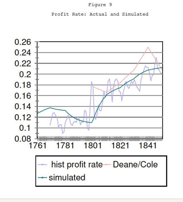 The rate of profit of British industry begins a dramatic rise at the beginning of the 19th century. This is directly attributable to the application of steam power to mechanized industry. But there is another factor at work which most economists do not examine – the enforcement of new relations of production – a political question. First the data: