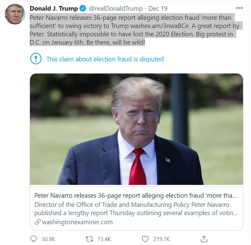 After November 3rd, the anti-Trump faction of the ruling class via the corporate press has been doing their best to ignore reality and pretend we just went through a normal bourgeois electoral cycle, you know, where one major party wins and the other loses. However, this illusion has been harder to maintain by the day. Trump signalled months before the election he had no intention of accepting an electoral loss and transferring power peacefully. He would have been happy to win the election outright of course but when this didn’t happen he just activated a long standing plan to try and overturn the election. The ‘Plan B’ activated was the legal strategy. It was of course hoped that a flurry of cases would result in at least one case reaching the Trump appointee dominated Supreme Court allowing for a judicial coup as occurred with George W Bush in 2000. Whilst that failed, the court cases however became the major vehicle for popularising the outlandish conspiracy theories of “foreign” communist interference via voting machine software and unsubstantiated claims of destruction of ballots and massive mail-in fraud, etc… The failed cases have also had a radicalising impact on Trump’s base. From their perspective it is now clear that even the Supreme Court is involved in the dastardly conspiracy being waged against Trump and the US constitution. Trump has built on ordinary peoples understandable and justifiable lack of faith in bourgeois democracy and directed all of this rage behind himself. First it was institutions like the “fake news” media who were the enemies of the people. Now it is clear from their perspective that the electoral system and the judicial system must be added to that list. The only thing they can now trust is Trump himself!