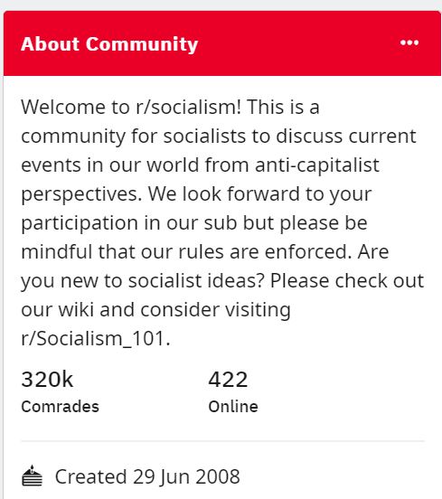 “[r/socialism] is one of the largest forums on the internet where socialists can share information.”